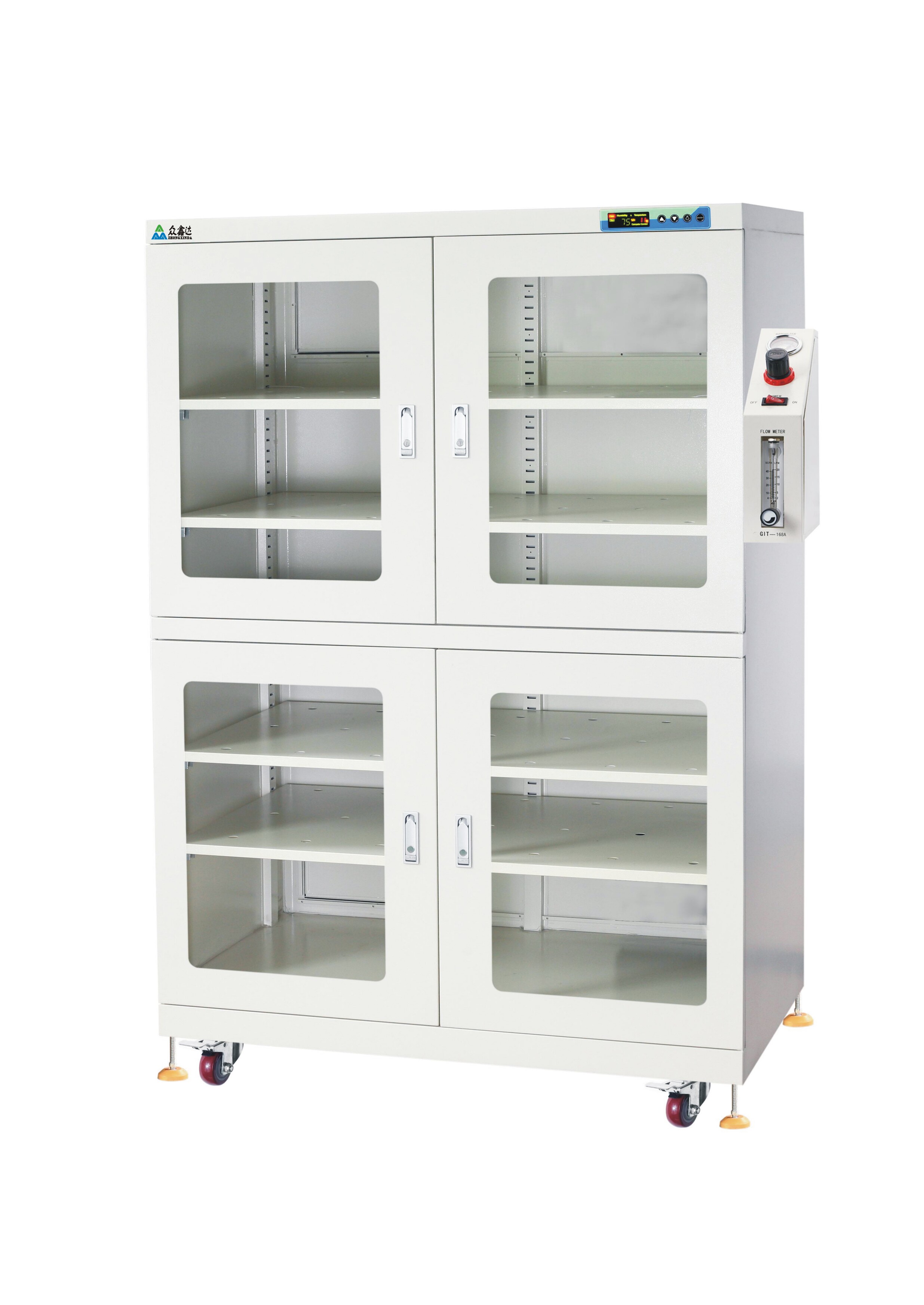 智能化控制系统 釆用与电子防潮箱相同智能化控制系统。可设定并自动采集箱内湿度来决定氮气供气阀的通断. 从而节省氮气,延长产品使用寿命。