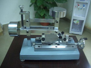 用途:涂膜硬度是涂膜的一种重要物理性能,其大小直接影响涂膜的一些重要使用性能,例如耐磨损性、耐磨粒性能、耐摩擦性、耐划痕性、耐冲击性及涂膜滞留作用及清洗难易等,因此,涂膜硬度是评定涂料性能的必测指标。使用本仪器可方便地测定涂膜硬度。 工作原理:本仪器主要由铅笔架和试验台组成,铅笔架与立柱等组成四连杆结构,保证了砝码的重量垂直作用于铅笔芯与试验台的交点上,并使铅笔与试验台成45°夹角,并保持不变。试验台可横向、纵向移动,用它固定涂料样板,并使样板朝着划痕方向滑动,铅笔就在试片上划出相应轨迹来。换用不同铅笔划不同痕迹,据此可判定涂膜的硬度值。